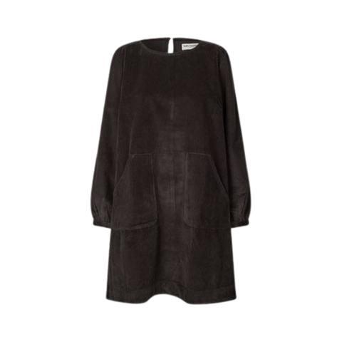 CarlaLL Kort Kjole fra Lollys Laundry er en elegant og behagelig kjole i blødt fløjlsstof. Den har lange ærmer, rund hals og knaplukning i nakken, samt praktiske lommer foran. Med sit A-snit og længde lige over knæet er den både flatterende og alsidig – perfekt til både hverdag og fest.