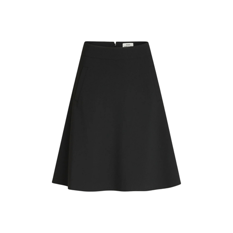 Denne sorte nederdel fra Mads Nørgaard er en tidløs klassiker med en elegant A-form og høj talje, der fremhæver silhuetten. Den glatte, let strækbare kvalitet gør den komfortabel og behagelig at have på, og med sidelommer og diskret lynlås bagpå får du både funktionalitet og stil. Nederdelen er alsidig — perfekt til både hverdag, kontor eller en aften ude — og kan styles med alt fra skjorte og blazer til t-shirt og sneakers eller en feminin top og hæle.
