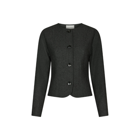 En elegant herringbone jakke designet til kvinder, der ønsker et tidløst og alsidigt beklædningsgenstand. Jakken er fremstillet i 100% polyester, hvilket giver en behagelig og let kvalitet, som passer perfekt til både hverdag og mere formelle lejligheder. Den antracitfarvede jakke har et klassisk snit, der komplimenterer forskellige outfits og tilføjer et sofistikeret touch.