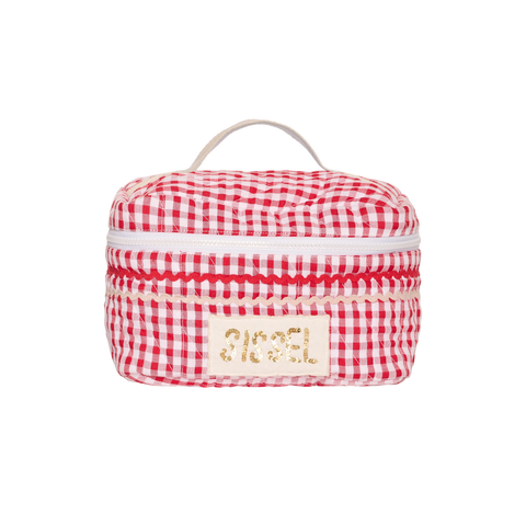 Sissel Bucket Bag har en blød, firkantet form, der gør den rummelig nok til alle dine små nødvendigheder. Tasken lukkes med en plastlynlås og har et praktisk håndtag øverst. Indvendigt har den en lille lomme med elastik og er fuldt foret. Tasken er let polstret og quiltet sammen med foret og er lavet af 100 % økologisk bomuld i garnfarvet tern. En markant zigzag-bort og det karakteristiske Sissel-logo, udført i glitrende pailletter, pynter tasken på elegant vis.