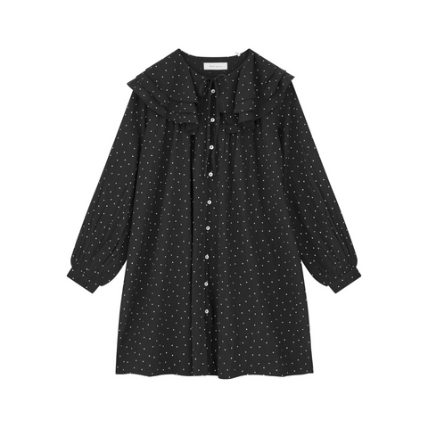 Denne enormt smukke og komfortable kjole fra Skall Studio – er perfekt til efteråret. Den er lavet i 100% bomuld, der føles behagelig mod huden, og har et klassisk, tidløst design med et feminint præg. Kjolen har lange luftige ærmer, og en elegant knap-lukning foran. Det fine prikmønster tilføjer et charmerende touch, mens den afslappede pasform gør den nem at style til både hverdag og mere festlige lejligheder. Kombiner den med evt jeans, lange støvler og en cardigan for et stilfuldt efterårslook. En alsidig kjole, der sikrer komfort uden at gå på kompromis med looket samt kvaliteten.