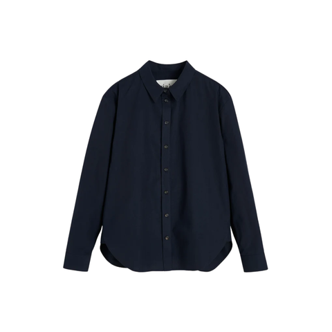 Aiayu Paulina Shirt i navy er en klassisk og tidløs skjorte med et enkelt udtryk. Den har en afslappet pasform og rene linjer. Et alsidigt valg til både hverdag og mere formelle anledninger.