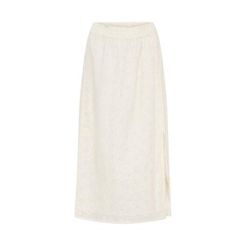 Romantisk midi-nederdel med et feminint udtryk. De fine, små blomster-hulbroderier over hele nederdelen giver et let og elegant look, perfekt til varme dage. En stilfuld og luftig nederdel, der nemt kan styles til både hverdag og festlige lejligheder.