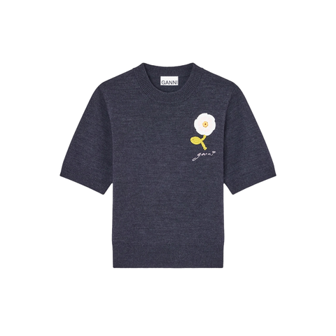 Denne strik fra Ganni er et elegant statement-piece, der kombinerer klassisk strikdesign med fine, dekorative hæklede applikationer. De detaljerede elementer giver strikken et feminint og håndlavet udtryk, som tilfører personlighed og kant til ethvert outfit. Designet balancerer det tidløse med det moderne og passer perfekt ind i en stilbevidst garderobe.