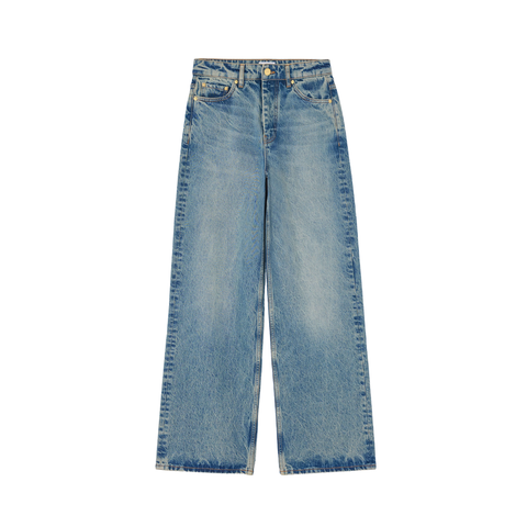 Disse Izey jeans fra Ganni er den perfekte blanding af klassisk denim og moderne attitude med en afslappet pasform, der gør dem til et must i enhver garderobe. Fremstillet i stift, non-stretch denim med en kraftig vintage vask får jeansene et autentisk, “slidt” look med masser af karakter, samtidig med at kvaliteten og strukturen bevares sæson efter sæson. Med en mellemhøj talje, lavt skridt og løse, lige ben skaber de en boyfriend-inspireret silhuet, der føles både cool og ubesværet. Brug dem med en enkel t-shirt og sneakers for et afslappet hverdagslook, eller kombiner dem med en skjorte og støvler for et mere poleret udtryk. Uanset hvordan du styler dem, giver disse jeans et råt og tidsløst denimudtryk, der er let at elske.