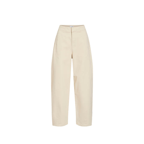 Disse jeans har en høj talje og en bred benform, der skaber et moderne og komfortabelt fit. Designet inkluderer detaljer med syninger, som tilføjer et subtilt, men stilfuldt element til looket. Jeansene lukkes med en hægte og lynlås, og de har praktiske frontlommer. Farven er en lys grå nuance med et blødt udtryk, der passer godt til forårs- og hverdagsbrug. Materialet består primært af bomuld med en smule elastan, hvilket giver en behagelig pasform uden at gå på kompromis med holdbarheden.