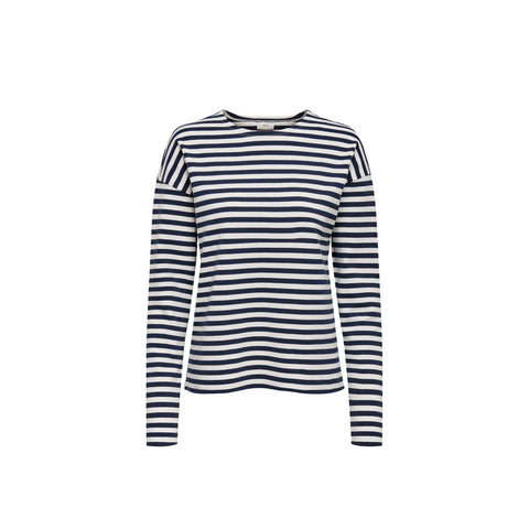 Denne langærmede top har en rund halsudskæring og en regular pasform, som sikrer komfort hele dagen. Den fine, lyse farve kaldet Cloud Dancer giver et stilrent og delikat udtryk, der let kan kombineres med dit øvrige tøj til foråret 2026. Stoffet består af 95% bomuld og 5% elastan, hvilket bidrager med både blødhed og en let strækbarhed, så du føler dig godt tilpas i hverdagen. Det stribede mønster tilføjer et subtilt, men interessant detail til designet, som gør toppen både enkel og elegant. Perfekt til både skole, arbejde og dagligdagens aktiviteter, hvor du ønsker en cool stil, der er nem at style med dine favoritter i garderoben.