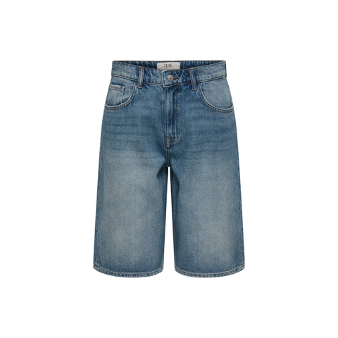 Denim bermudashorts fra JDY i slidstærk kvalitet med klassisk vævet struktur. Fremstillet i bomuldsdenim med en behagelig og holdbar finish, der holder faconen. Modellen har mellemhøj talje og en løs, knælang pasform, som giver god bevægelsesfrihed og et afslappet look, ideel til hverdagsbrug.