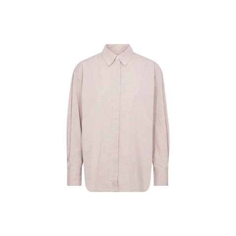 Moderne ternet skjorte i blød bomuld med oversize pasform, der giver et afslappet og stilfuldt udtryk. Skjorten har spids krave og skjult knaplukning, som skaber et rent og minimalistisk look. Perfekt til lag-på-lag styling – brug den i jeans for et klassisk outfit eller åben over en top for et casual hverdagslook. En alsidig skjorte til garderoben.