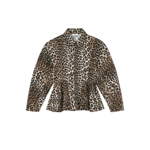 Oplev et perfekt mix af tidløs elegance og moderne kant med denne peplum-skjorte med leopardprint fra GANNI. Skjorten er lavet i en blød, økologisk bomuldsblanding, der både føles let og behagelig mod huden, samtidig med at den holder faconen flot hele dagen. Det karakteristiske leopardprint giver et fashionable udtryk, som løfter ethvert outfit, mens den klassiske krave og knaplukning foran skaber et elegant, rent look. De rundede ærmer tilfører et feminint touch, og den let udskårede peplumsilhuet fremhæver taljen på en flatterende måde. Med sin alsidige stil kan denne skjorte dresses op med en nederdel og heels til særlige lejligheder eller styles mere casual med jeans og sneakers til hverdagsbrug. En moderne garderobeklassiker, der gør ethvert look mere spændende.