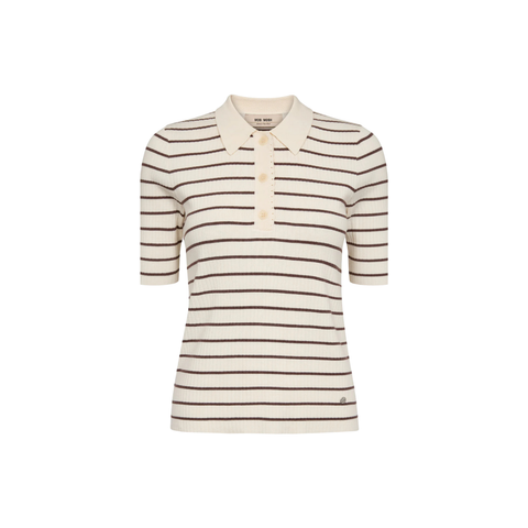 Denne strik fra Mos Mosh kombinerer tidløs skandinavisk stil med et moderne, sofistikeret udtryk, hvor de subtile striber tilfører et klassisk og elegant touch. Strikkens lette og behagelige kvalitet gør den ideel til både hverdag og mere afslappede lejligheder, og den afslappede pasform giver en ubesværet og komfortabel følelse hele dagen. Det grafiske stribemønster giver en moderne energi, som nemt kan styles med alt fra jeans til skræddersyede bukser, så den fungerer som et alsidigt basisstykke i enhver garderobe. Mos Mosh er kendt for sit fokus på detaljer, pasform og kvalitet, og denne strik er et tydeligt eksempel på deres skandinaviske designæstetik.