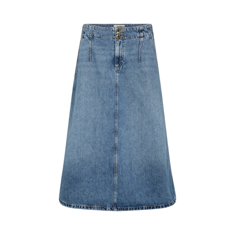 Modern A-line denim skirt in pure cotton that combines a timeless design with a structured and durable look. The skirt has a flattering mid-rise waist and hidden button and zip closure for a clean and stylish look. Easy to style with both a shirt and soft knit - a versatile wardrobe must-have.