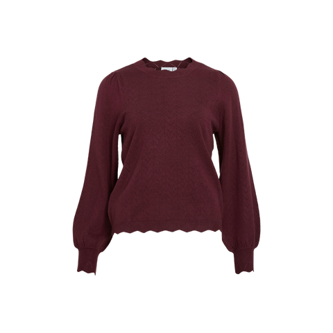 Elegant sweater with balloon sleeves and a wavy edge that gives a feminine and modern look. Made from breathable, crease-resistant knit fabric, perfect for everyday wear. It has a classic O-neck and ribbed edges that ensure a comfortable, regular fit. A stylish and comfortable sweater for any occasion.