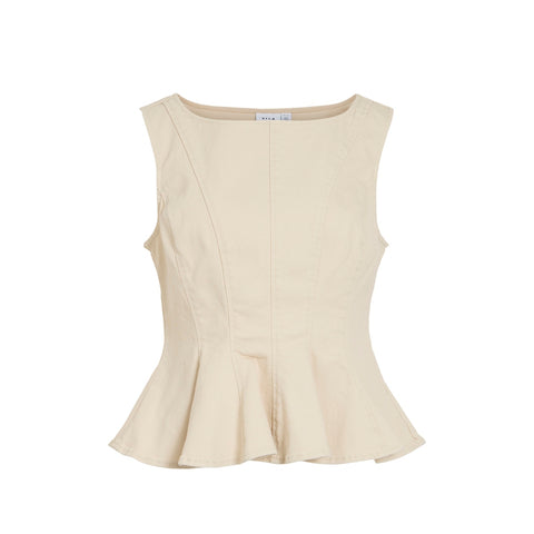 Denne peplum-top kombinerer en elegant bådudskæring med ærmeløs komfort, hvilket giver et afslappet, men alligevel stilfuldt udtryk. Med en regular fit sikrer den en behagelig pasform, der ikke strammer. Farven er en blød, sart nuance, som passer perfekt til forårssæsonens lyse toner. Toppen hører til en casual stilkategori, hvilket gør den velegnet til både hverdag og mere afslappede anledninger.
