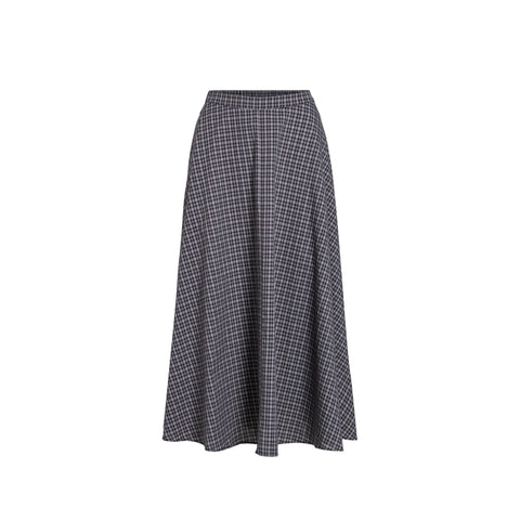 Dette midi-nederdel i et klassisk A-line snit har en høj talje, som fremhæver figuren på en elegant måde. Det ternede mønster dækker hele nederdelen og tilføjer et trendy og tidløst look, der nemt kan styles til både hverdag og mere formelle lejligheder. Nederdelen er ideel til at give garderoben et ekstra pift med sit traditionelle, men moderne design. Den sorte farve gør den let at kombinere med forskellige farver og styles, hvilket gør den til et alsidigt valg året rundt.